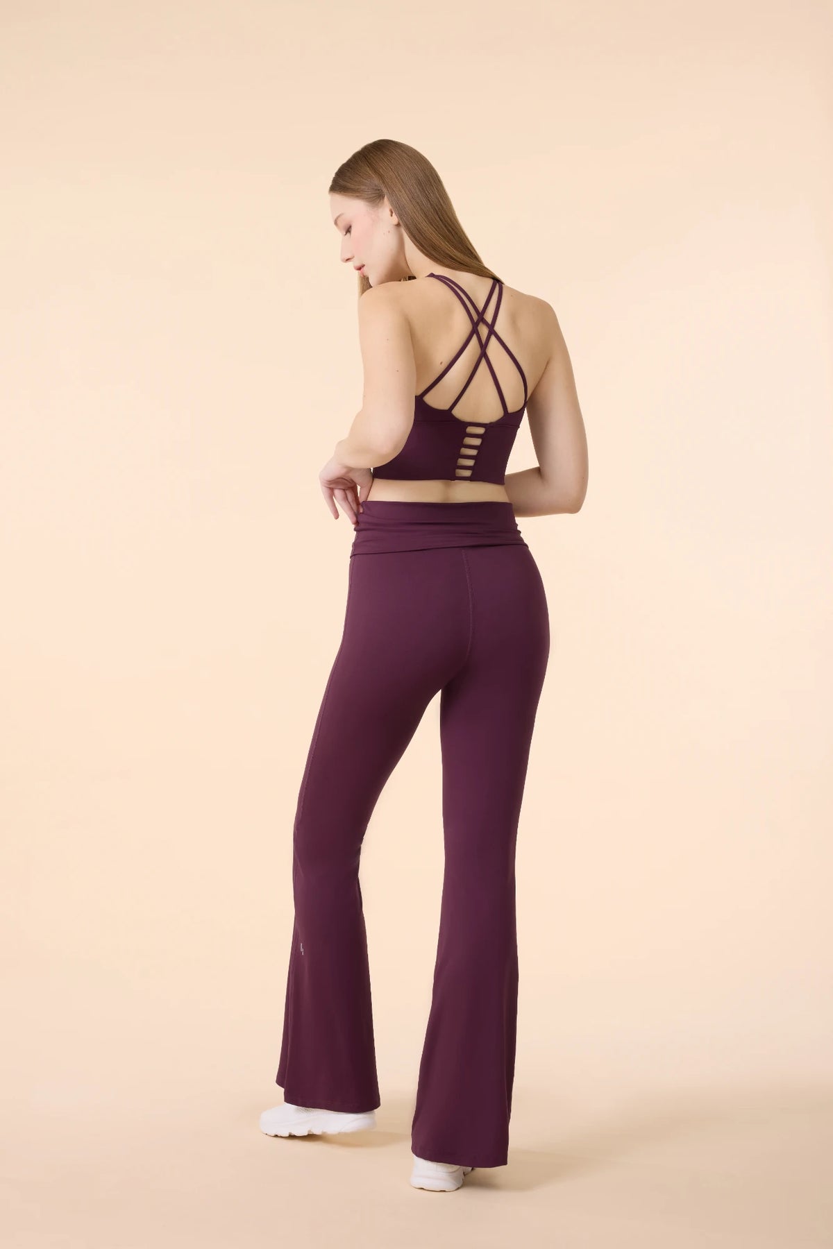 Sora Leggings bring together clean lines and functional comfort. Designed with a fitted thigh and subtle bootcut leg, they offer a naturally elongating look. The high-rise fold-over waistband moves with you, offering support without restriction. Comes in Black Cherry, Black, and Dark Green.